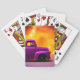 Diese Spielkarten haben einen lila LKW auf ihnen.
