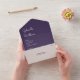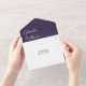 Alles in einer Hochzeitseinladung mit Ihren Monogramm-Initialen und eleganter moderner minimalistischer Typografie auf lila Hintergrund. Die Einladung enthält eine perforierte RSVP-Karte, die für Sie individuell adressiert oder links als leere Adresse für die Handschrift der Adressdaten Ihres Gastes verwendet werden kann. Entwickelt von Thisisnotme©
