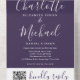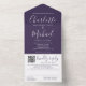 Lila moderne, elegante Script QR Code Hochzeit All In One Einladung