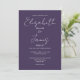 Diese lila, elegante Schriftzeichen-Hochzeitseinladung kann mit Ihren Informationen in der schicken Typografie personalisiert werden. Entwickelt von Thisisnotme©