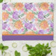 Farbenfrohe Küchentücher, Gemustert in Orangen- und Lila-Blumen