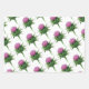 Die wunderschönen Geschenkverpackungsbögen sind mit lila Blume (der National Blume of Scotland) gefliest, die auf einem hellrosa, blassfarbenen, lila und weißen Hintergrund gekachelt sind.