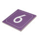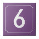 Schmale weiße Grenze mit umgekehrten Kreisfilets an den Ecken. Lila Hintergrund Keramik-Nummernfliesen. Sie passen sich die Nummern oder Buchstaben an, die Sie für Ihre Keramik-Fliesen oder Mosaik-Zeichen benötigen. Zahlenschilder für Wetterbeweise, Hausnummern