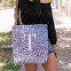 Lila Ombre Chunky Glitzer Mit Monogramm Tasche