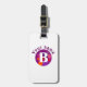 Lila orangefarbenes, minimalistisches Logo. Gepäckmarke mit Buchstabe B für die Fahrt.