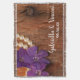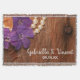 Der lässige und dennoch klassische Lila Periwinkle, Perlen und Barnholz Land Wedding Throw kann mit den Namen der Braut und Bräutigam und Heiratsdatum personalisiert werden. Diese rustikale, schicke, maßgeschneiderte Ranch-Decke zeigt ein malerisches Blumenfoto mit lila Perlenwinkeln oder Vinca, Blume-Blüten und Perlenhalskette mit braunem, verwittertem Stallholzhintergrund.