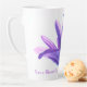 Diese große, latte Kaffeemaschine-Tasse zeichnet sich durch ein nahes Bild von Blume-Blättern in lila Farbtönen aus. "Haben Sie einen gesegneten Tag!" wird in passender lila Schrift hinzugefügt. Die Tasse ist leicht und bequem zu halten und sowohl Geschirrspüler als auch Mikrowelle sicher. Wenn Sie Fragen zu dieser Tasse haben oder mir helfen möchten, dieses Design auf einen anderen Artikel zu übertragen, können Sie mich über Zazzle kontaktieren. Ich helfe Ihnen gerne, das Bild und die Formulierung korrekt zu gestalten.
