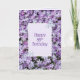 Lila Phlox blüht in einem Sommergarten mit Lavendelrahmen und Happy 86. Geburtstagstext.
