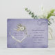 Cremeweißer Rosenbukett mit herzförmiger Schleife auf lila strukturiertem, altmodischem Postkartenhintergrund