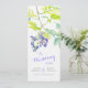 Lila Doppel-Dinner-Menü für Hochzeitsfeiern im Weinkeller in lila, grünen und grauen Farbtönen auf Weiß. Ideal für Ihren Garten oder lila Hochzeitsspeisen oder um sich vor der Hochzeit zu entspannen. Personalisieren Sie Ihre eigenen Namen und Ihre 4-Gang-Menü-Details auf der Rückseite. Einzigartige botanische Aquarellmalerei und Design von Sarah Trett.