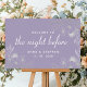 Set Sie den Ton für Ihren besonderen Abend mit diesem eleganten, Vintag inspirierten Probe Dinner Willkommensplakat. Mit einem lila Boho-Lavendel-Design mit rustikalen silbernen Blume und modernen Kalligrafien-Drehbüchern verleiht dieses schöne Stück Ihrer "Night Before"-Feier eine Touch von Charme und Eleganz.