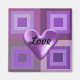 Ein lustiges Design mit einem lila Puffherz mit einem Hintergrund von Plätzen in lila Tönen. Das Wort "Liebe" kann auf Wunsch geändert werden.