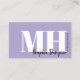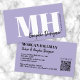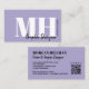 Lavender Lila Berufliche einfache moderne Monogram Business Card. Sie können es auf jedes von Ihnen gewollt Geschäft umstellen - Makeup-Künstler, Lash-Spezialist, Haarstylistin oder sogar auf etwas wie Marketing, Beratung und mehr! Mit einem lila Lavendel-Hintergrund auf beiden Seiten und einer Mischung aus Schwarz-Weiß-Schriftart in klassischer und feiner Typografie gepaart mit einem eleganten Script-Schriftart für die Details. Auf der Rückseite ist Platz für einen QR-Code vorhanden, damit sich die Kunden schnell mit Ihrer Website verbinden können. Über diesen Symbolen können soziale Medien angezeigt werden. Sie können alle Icons entfernen, die Sie nicht gewollt haben, um sie sauber und personalisiert behalten. Ein trendiger und schicker Look, der noch beruflich und elegant ist. Sie können alle Farben ändern, um es so wollen, wie Sie es haben. Der Seitenname auf der Vorderseite sollte mit den meisten Initialen funktionieren, aber wenn nicht, können Sie mit dem Abstand im Editor gewollt werden.