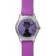 Eine individuelle Armbanduhr für schwarze Katzen mit einer bösen schwarzen Katze, die schon acht von ihren neun Leben und lila farbigen Bands gelebt hat. Diese böse Katze ist aber noch gemein. Diese böse schwarze Katzenuhr wird ein großartiges Geschenk für jemanden machen, der Katzen Liebe macht.