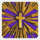 Ein Kreuz mit goldenen Strahlen auf einem lila Hintergrund.