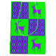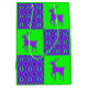 Lila Ren auf Limonem checkered mit lila/Limonem geometrischem Muster.