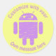Niedlicher lila Roboter auf kundenspezifischen gelben Aufklebern.