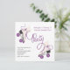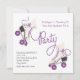 Eine Kindergeburtstag-Party Einladung, die eine Abbildung eines Rollerpaares mit lila Skaten, Fäden und Sternen zeigt. Personalisieren Sie den Text.