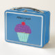 Yummy lila Zuckerguss Vanillekuchen in hellblauer Wrapper mit Blick auf Sprinklen und eine rote Kirsche oben vor weißem Hintergrund. Backside hat rosa Zuckerguss Schokoladenkuchen mit dem Aussehen von Sprinklen in einem gelb grünen Wrapper mit Redewendungen, Zucker und Gewürz, Alles Nizza, Future Bäcker vor lila Hintergrund. Original Design © TamiraZDesign.