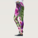 Diese Leggings haben ein lila, rosa und grünes Blumenmuster auf ihnen.