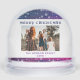 Lila rosa Rustikaler Holz Schneeflocken Weihnachten Familie Foto Schnee Globes. Schneeflocken überall. Rustikale lila und blaue Holzstruktur mit schönen weißen Schneeflocken in verschiedenen Größen und Formen. Fügen Sie Ihr Foto und Text auf der Vorderseite und auf der Rückseite ein.