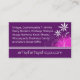 Trendy Geschäftskartenentwurf der weißen abstrakten Blumen-Silhouetten auf einem lila Hintergrund mit rosa splats. Kundenbezogenheit ist einfach.