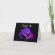 Eine elegante Dankkarte. Ein wunderschönes Foto einer lila, blauen und rosa Rose auf einem schwarzen Hintergrund, beleuchtet von einem Single-Spotlight, das eine spektakuläre Beleuchtung schafft, die die Schönheit dieser Blume, die von zarten kleinen Wassertröpfchen bedeckt ist, deutlich macht.