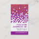 Eine Dusche der Lila und des Rosts tonal Pixel regnen unten auf einem Handelsnamen auf der Front dieser Geschäftskarte. Eine Website druckt unten in einer reichen lila Platte. Die Rückseite deckt einen Teil des Pixelbildes mit vollem Kontaktinformationsdrucken in einer lila Platte unten auf. Groß für Informationstechnologie, Telekommunikation oder Marketings- und Kommunikationsfirmen. Verfügbar in den abwechselnden Farben mit zusammenpassenden Produkten.