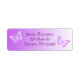 Lila und weißer Schmetterling mit verblasstem Hintergrund und niedlichem Schriftart Rücksendeadresse Label.