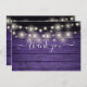 Ein elegantes Drehbuch Dankeschön-Karte mit hübschen Saitenleuchten auf einem lila rustikalen Holzhintergrund. Sie können mit Ihrer eigenen Dankeschön-Nachricht auf der Rückseite personalisieren, oder wenn Sie es vorziehen, Ihre eigene handgeschriebene Nachricht hinzuzufügen einfach den Text löschen. Ein perfekter Weg, um Ihnen zu danken! Entwickelt von Thisisnotme©