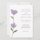 Diese Hochzeitseinladungen haben einen klaren und schlichten, modernen Look mit Illustrationen von anemonischen Blume in einem leicht staubigen lila auf der links Seite und alle Ihre Hochzeitsdetails auf der rechten Seite in eleganter lila Schrift.