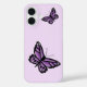 Dieser Fall zeigt Desteis Cartoon-Abbildung eines wunderschönen lila Farbschmetterlings. Der Schmetterling ist unten und oben platziert und leicht geneigt. Die Hintergrundfarbe ist hell lila. Fun Design für die Sommerzeit oder für jemanden, dessen Lieblingsfarbe lila ist, zum Beispiel!