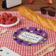 Lila schwarze pappteller