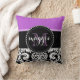 Lila schwarzer Damast-Girly Monogramm Kissen