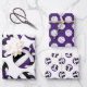 Diese spaßigen Packpapiere für Volleyballspieler oder -fans sind mit drei individuellen, sich ergänzenden Designs versehen - Blatt 1 mit unterschiedlich großen Volleybällen mit lila, schwarz-weißen Paneelen - die Volleybälle werden selektiv für ein einzigartiges 3D-Aussehen beschattet - Blatt 2 hat schlichte weiße Volleyballfiguren auf individuellem lila - von katz d_zynes