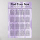 Das ist ein elegantes Plakat mit lila Seidenmuster und lila Perlen. Der Text "Bitte finden Sie Ihren Sitzplatz" ist eine handgeschriebene Schrift mit den Farben Weiß und Gold. Es gibt genug Platz für mehr als 100 Gäste. Sie können die Tabellen löschen, die Sie nicht benötigen, und den Schriftart jeder Tabelle verändern, um ihren Platz auf dem Poster anzupassen. Oder bewegen Sie sich einfach um den Tabellenblock.