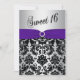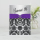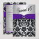 Lila, silber, schwarzer Damast Sweet 16 Einladung