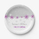 Lila, silbergraue, weiße, schneeflocke Hochzeitsplatte mit Sternen und eleganten lila Schneeflocken auf Grau. Text in lila und grau. Ein stilvolles Design, das perfekt für Ihren Winter, Dezember oder Weihnachten Hochzeit ist. Modernes und zeitgenössisches, aber dennoch geeignet für eine traditionelle Hochzeit, Brautparty, Empfang, Verlobung oder Jubiläum Party.
