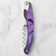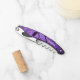 Dieser Korkenzieher hat die Silhouette einer schwarzen Krähe, die in schwarzen Bäumen an einem lila Himmel sitzt. Passen Sie Ihren Namen mit den Vorlagen vorne und hinten an.