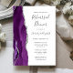 Der links Rand dieser eleganten modernen Hochzeitsfeier-Probe besticht durch eine lila Aquarellgrenze mit silberfarbenem Imitat-Glitzer. Der individuell anpassbare Text kombiniert handgeschriebene Holzkohle, Kupferplatte und kursiv Schriftart auf weißem Hintergrund. Auf der Rückseite ist ein lila und silberfarbenes Design erkennbar.