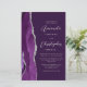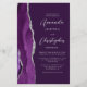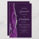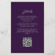 Der links Rand dieser eleganten, modernen Hochzeitseinladung zeichnet sich durch eine lila Aquarellgrenze aus, die mit Imitaten silbernen Glitzer bestickt ist. Der benutzerdefinierbare Text kombiniert silbergraues Skript und serifenlose Schriftart auf lila Hintergrund. Die Rückseite bietet Platz für Hochzeitsdetails auf einem soliden lila Hintergrund, zusammen mit einem QR-Code, den die Gäste scannen können, um Ihre Website und UAWG zu besuchen, was die Kosten für den Druck und Versand separater RSVP-Karten rette.