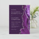 Die rechte Seite dieser eleganten, modernen Hochzeitseinladung ist mit einem lila Aquarellrahmen besetzt, der mit Imitaten silbernen Glitzer bestickt ist. Der anpassbare Text kombiniert silbergraue Serifen, Kupferplatte und kursiv Schriftart auf einem lila Hintergrund. Auf der Rückseite ist ein lila und silberfarbenes Design erkennbar.