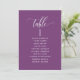 Helfen Sie Ihren Gästen mit diesen eleganten, modernen Sitzplakaten mit Gästebamen ihren Tisch zu finden. Doppelseitige Karten, damit die Gäste von beiden Seiten, vorn oder hinten nach ihren Namen suchen können. Klare Platzverhältnisse, die Ihnen die Möglichkeit geben, Clips oder Lochausschnitte für hängende Displays zu verwenden oder Tischhalter/Rahmen zu verwenden. Lila Hintergrund und weißer Text. Moderne handgeschriebene Kalligrafiedetails. Mehrere Farboptionen. Haben Sie alle Tischnummern in der gleichen Farbe oder mischen Sie die Farben nach dem Farbthema Ihres Events.