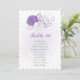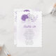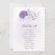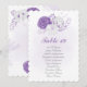 Romantische, weiße und lila Blumen botanische Tischnummer Sitzkarte. Die Einzelheiten des Glitzer werden simuliert.