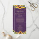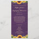 Dieses rustikale Landdesign besticht durch goldene Saitenlichter und Spitzen, Sonnenblumen und Lavendelspriesen vor einem lila Holzboden. Der Text mit anpassbaren Braut- und Bräutigam-Namen und Veranstaltungsdetails erscheint in blassem Gold in beliebter Schrift- und Serifentypografie. Sie können dieses Programm für Ihre eigene Hochzeit personalisieren, indem Sie den Text in der Vorlage ändern.
