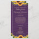 Lila Sonnenblumenhochzeit mit rustikalem Holzring Programm