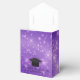 Elegantes lila Gastgeschenk für einen Gymnasiast oder Uni-Abschluß. Personalisieren Sie diese schöne trendige Box mit Ihrer Klasse von 2025 Schulnamen unter der schicken schwarzen Graduiertenkappe. Trendy funkelnd Sterne Design.