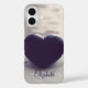 Ein Stillleben-Foto eines seelenvollen, einsamen lila Steinherzes, das auf einem feuchten Sandstrand sitzt. Personalisieren Sie mit einem Namen in einem hübschen lila Schriftart.