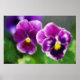 Zwei brillante lila Stiefmütterchen vor einem grünen Hintergrund. Das Original ist ein Ölgemälde von Kathie Miller