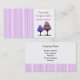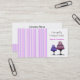 Eine moderne und dennoch elegante Visitenkarte für ein Backgeschäft, Kuchendekoration, Desserts oder Catering Business. Weiche lila und lila Streifen und Designerkuchen unterstreichen dieses Design. Passen Sie Ihre Daten an.